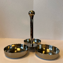Stilfullt og funksjonelt krydderstativ med 3 beholdere – ideelt for presentasjon og oppbevaring av krydder, sukker, salt, pepper, urter eller små tilbehør. Perfekt for restauranter, hoteller, kafeer og buffeter som ønsker både praktisk bruk og estetisk servering.
