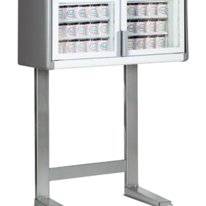De oppvarmede, selvlukkende glassdørene hindrer kondens og gir god oversikt over produktene. Med automatisk avriming blir vedlikeholdet enkelt, og teleskopiske ben gjør det lett å tilpasse høyden under installasjon.