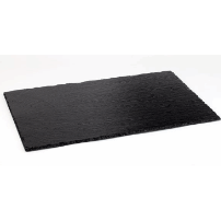 Skiferens naturlige overflate gir et rustikt og eksklusivt preg, samtidig som materialet er slitesterkt og enkelt å rengjøre. Den flate og stabile formen gjør den ideell til presentasjon på bordet, buffeten eller i serveringsvogner.