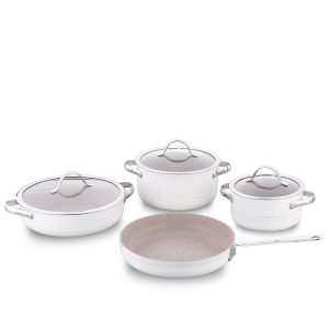 Kjelesett aluminiumKjelesett A2619-2 Linea vanilje 7 deler aluminium induksjon med non-stick belegg – Korkmaz