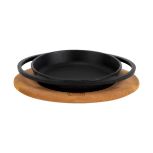 Dette runde støpejernsfatet med håndtak og fjøl kombinerer robust funksjonalitet med elegant presentasjon. Fatet kan tas rett fra komfyr eller ovn til bordet, og gir et profesjonelt og rustikt preg på serveringen. Perfekt til kjøtt, fisk, grønnsaker, småretter og tapas.