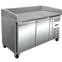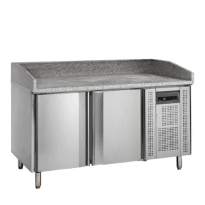 Denne modellen kombinerer praktisk kjølerom, marmortopp for pizzatilberedning og kjølebrønn for råvarer – alt i én kompakt og funksjonell enhet.Den er ideell for profesjonell bruk i pizzarestauranter, takeaway-kjøkken og storkjøkken, hvor driftssikkerhet og hygiene er avgjørende.