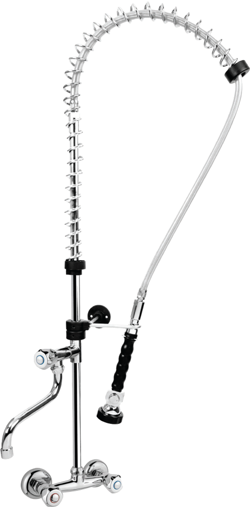 Profesjonell forspyledusj med kran for veggmontering , utviklet for intensiv bruk i restaurant, storkjøkken, kantine, hotell og catering .