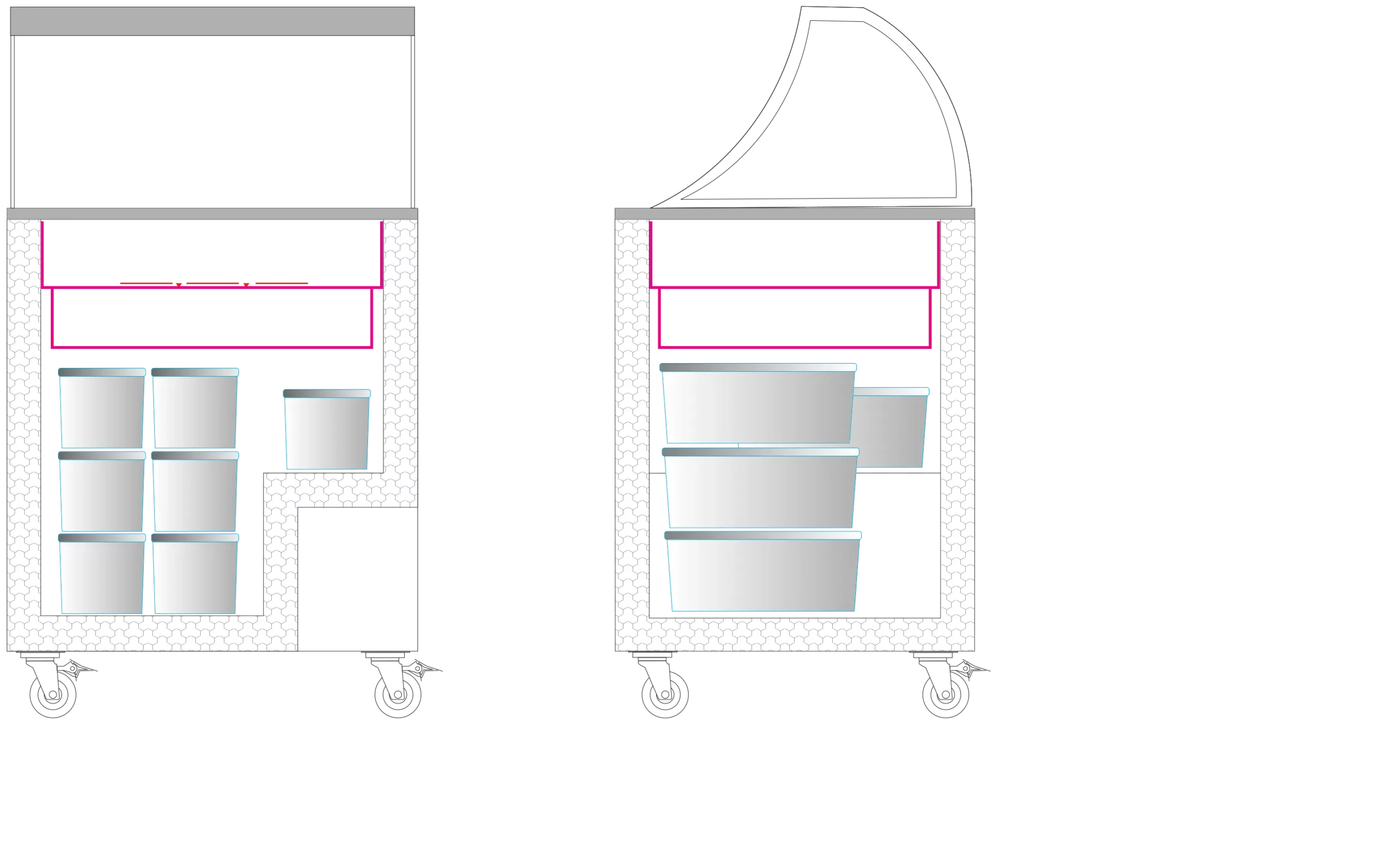 Kapasitet: 4 x 5 L plastbaljer (serveringskurver, tilbehør)