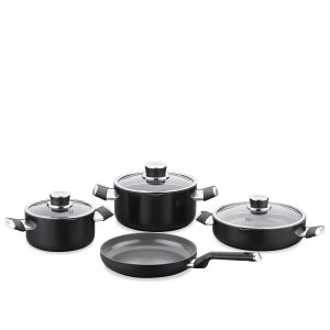 Den solide aluminiumskroppen sikrer jevn og effektiv varmefordeling, mens induksjonskompatibel bunn gjør settet egnet for alle typer kokeplater.