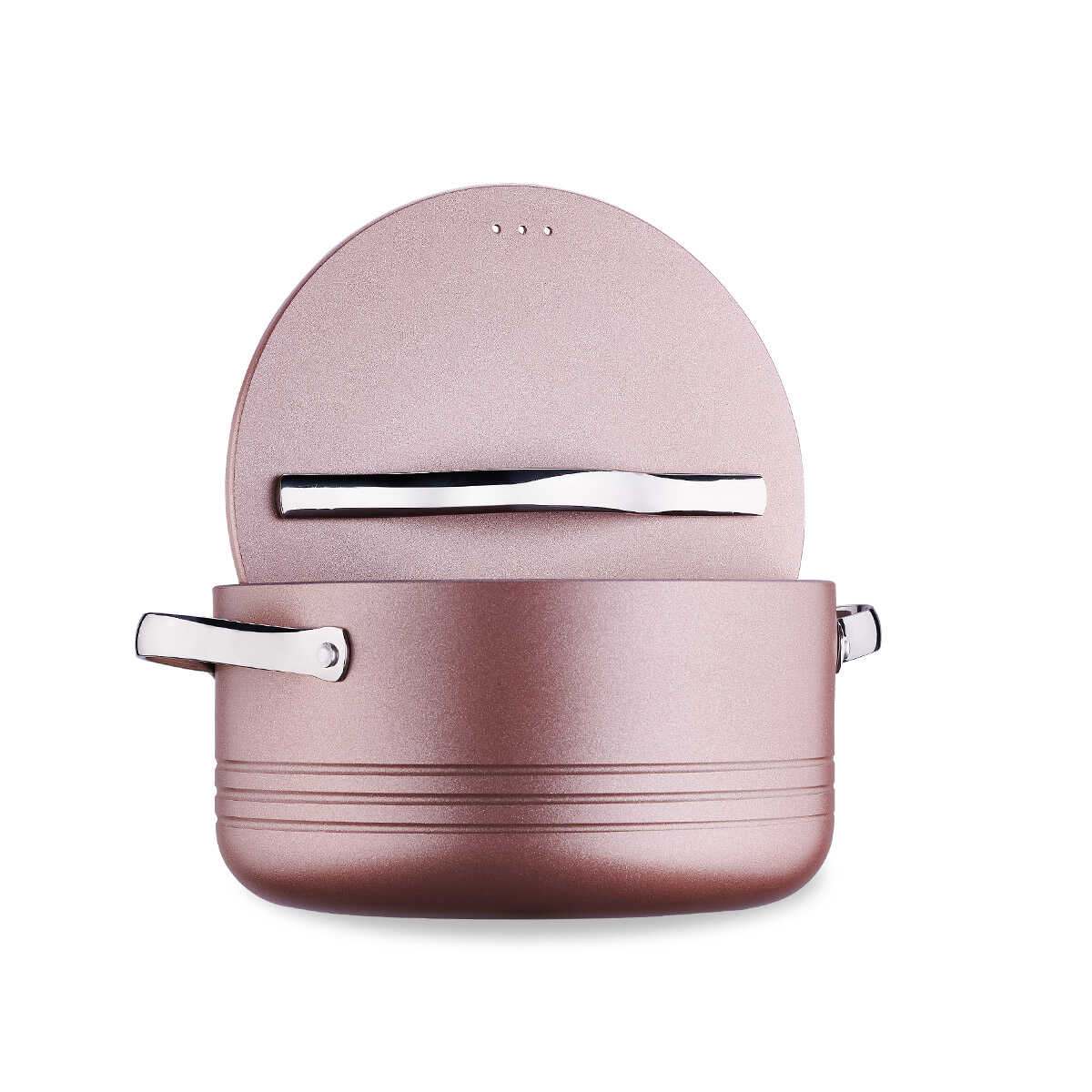 Korkmaz A2620 Linea Plus rosagull 7 deler kjelesett kombinerer elegant rosegold-design med høy slitestyrke og sunn matlaging. Settet er produsert i solid aluminium og utviklet med miljøvennlig teknologi av resirkulerbare og naturlige materialer.