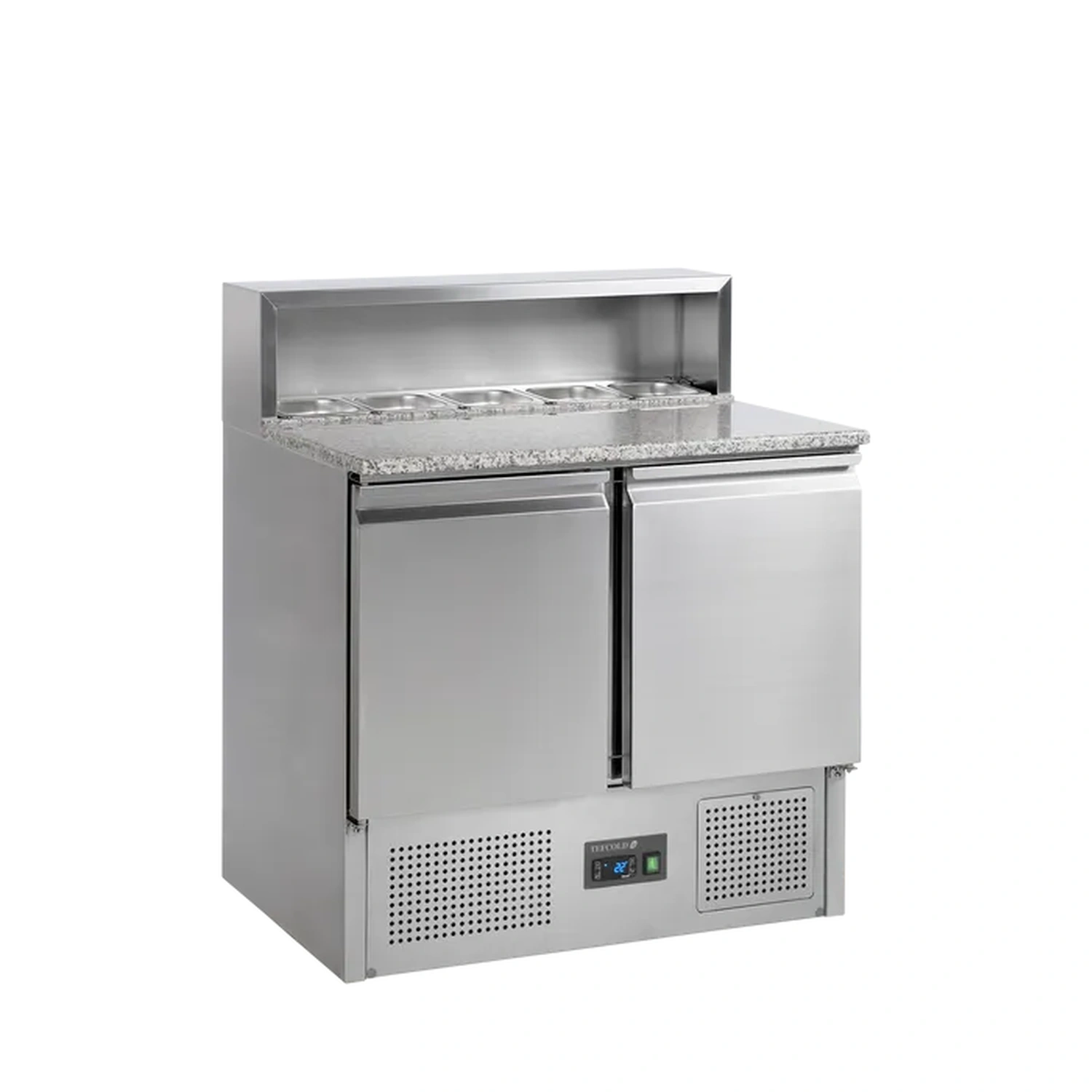 Pizzakjølebenk Tefcold PT920 – 2 dører, kjølebrønn, marmor topp – 90×70 cm