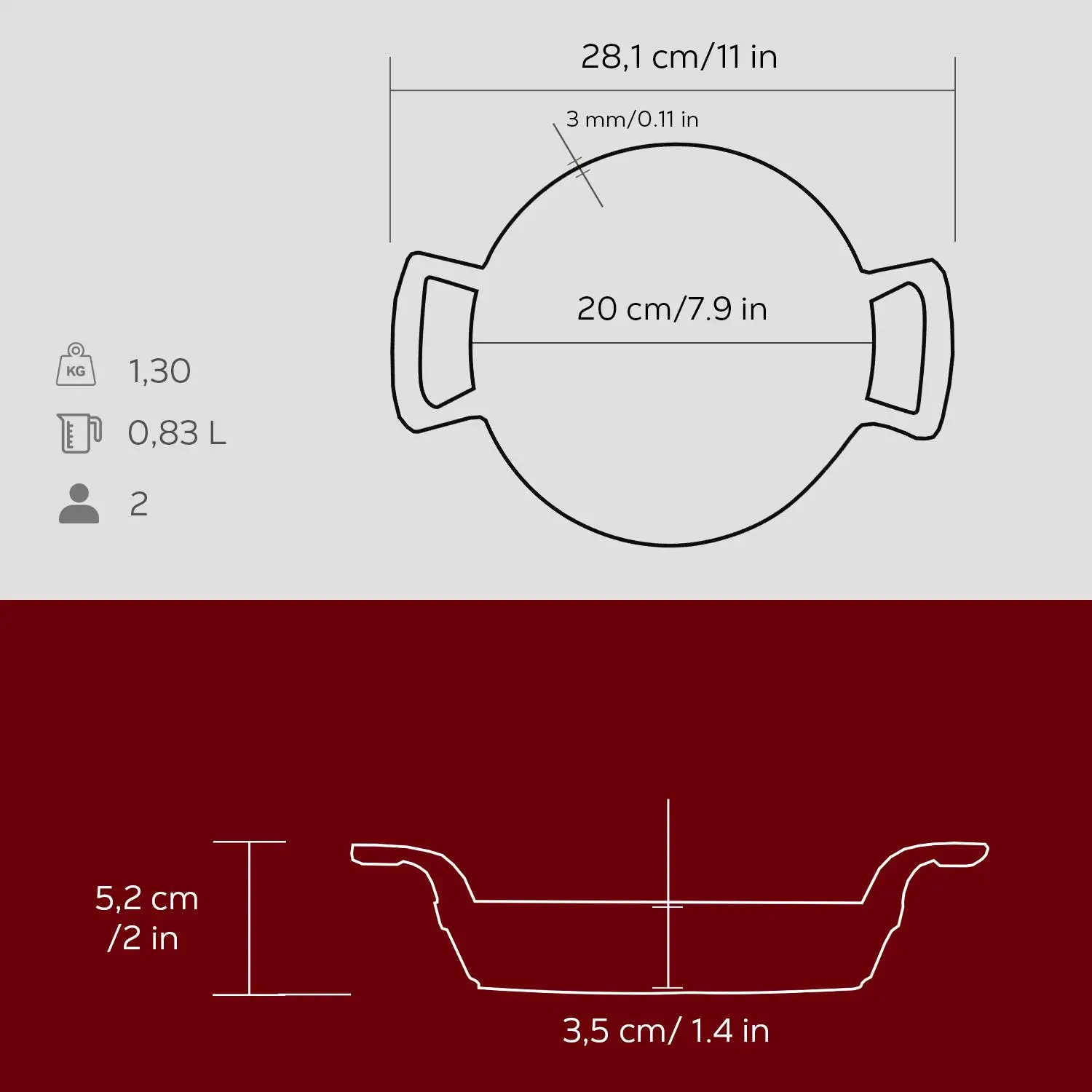 🍳 LAVA Støpejernsstekepanne – Rund – Rød – 281 × 230 × 52 mm – 0,83 liter